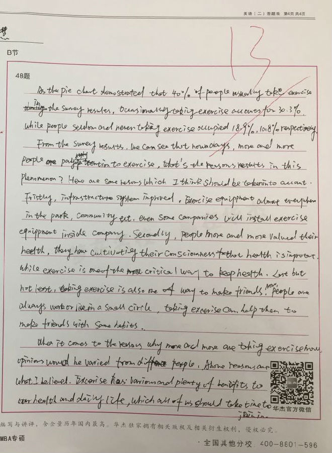 最喜欢华杰的模考:比正式考试稍微难点(这样更能激励我们斗志,呵呵);覆盖的考点与重点很全,我记得去年经过三次模考,我其实就是将所有考点再串联复习了一遍。考后还有老师详细的解答,老师的应试技巧很到位。考试当天一点也不紧张,练成老油条了,呵呵! 最后成绩201,真的感谢华杰。